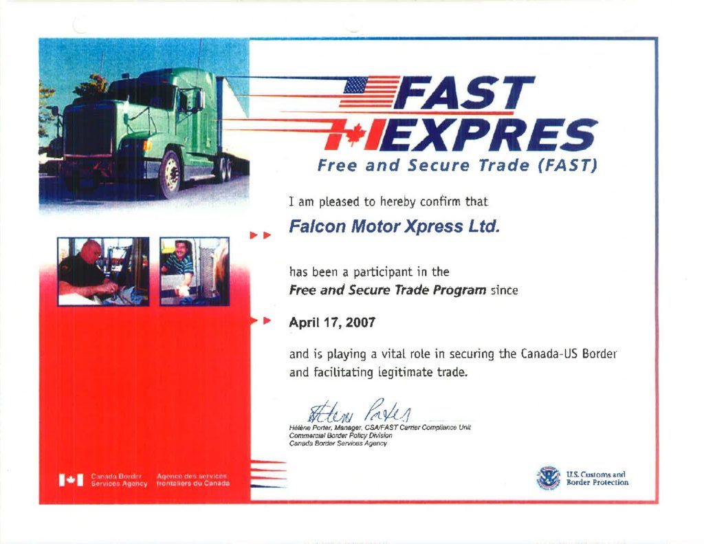 At Falcon Motor Xpress, we value our partner affiliations. Below please find our credentials. Click on the individual logos and an enlarged version of the certificate earned will be displayed.